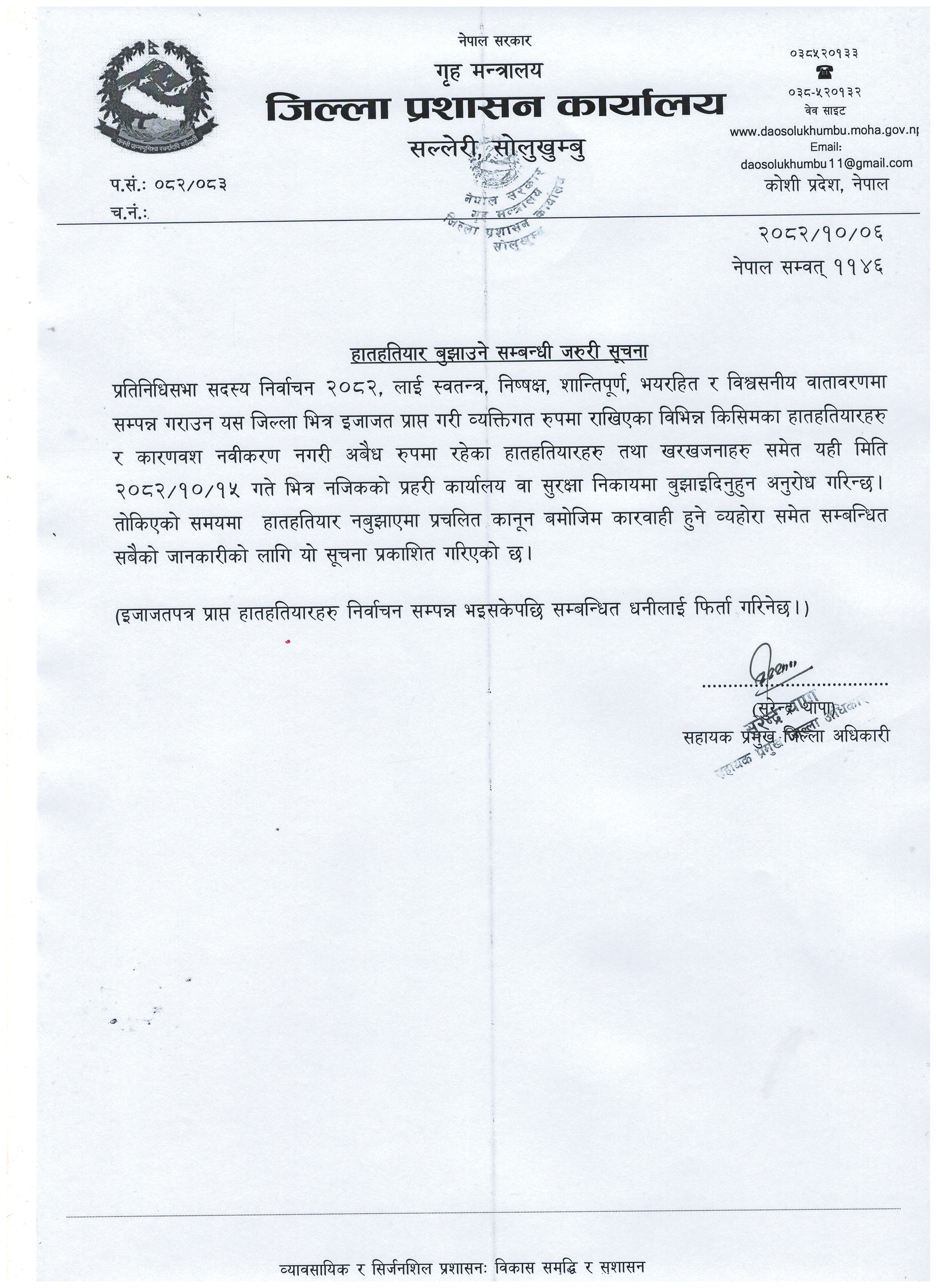 हातहतियार बुझाउने सम्बन्धी जरुरी सुचना !!!