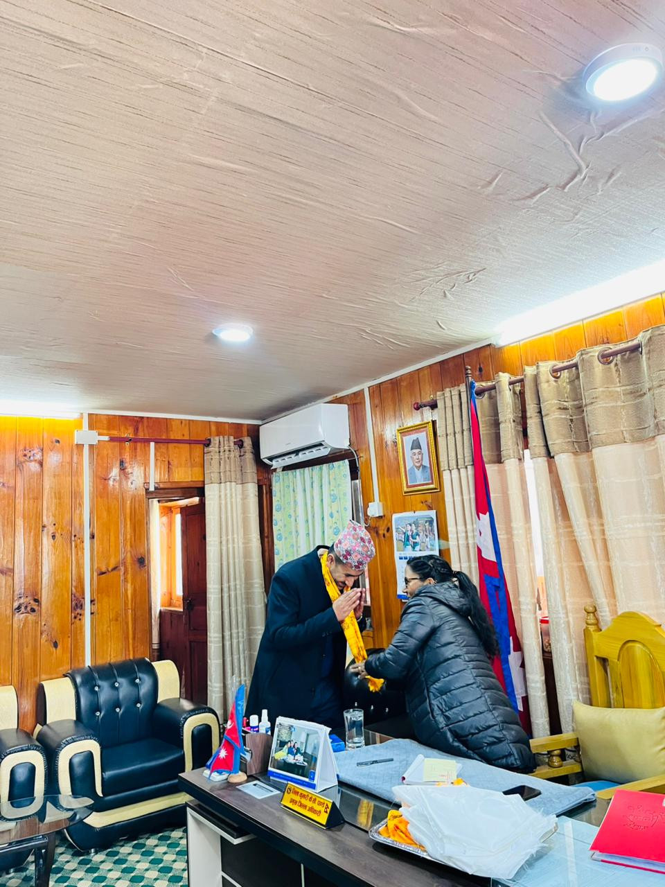 स.प्र.जि.अ. श्री देवेन्द्र सुवेदीलाई कार्यालयमा स्वागत गर्नुहुदैँ।