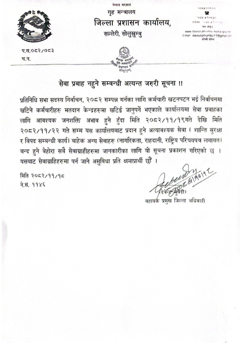 सेवा प्रवाह नहुने सम्बन्धी सूचना !!