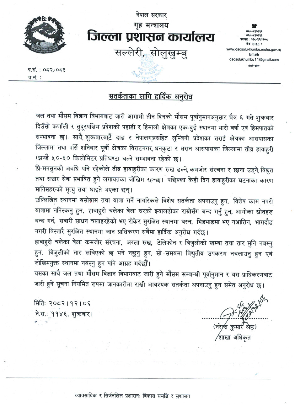 © सर्वाधिकार सुरक्षित जिल्ला प्रशासन कार्यालय, सोलुखुम्वु
